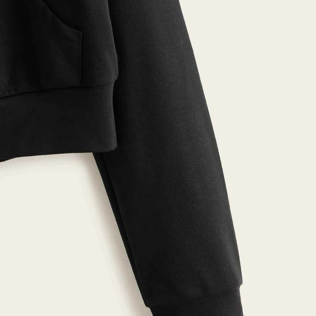 Осенние женские короткие толстовки, свитшот, уличная одежда, Женская Повседневная Однотонная рубашка с длинным рукавом и карманами на молнии, толстовка с капюшоном, топ mikina