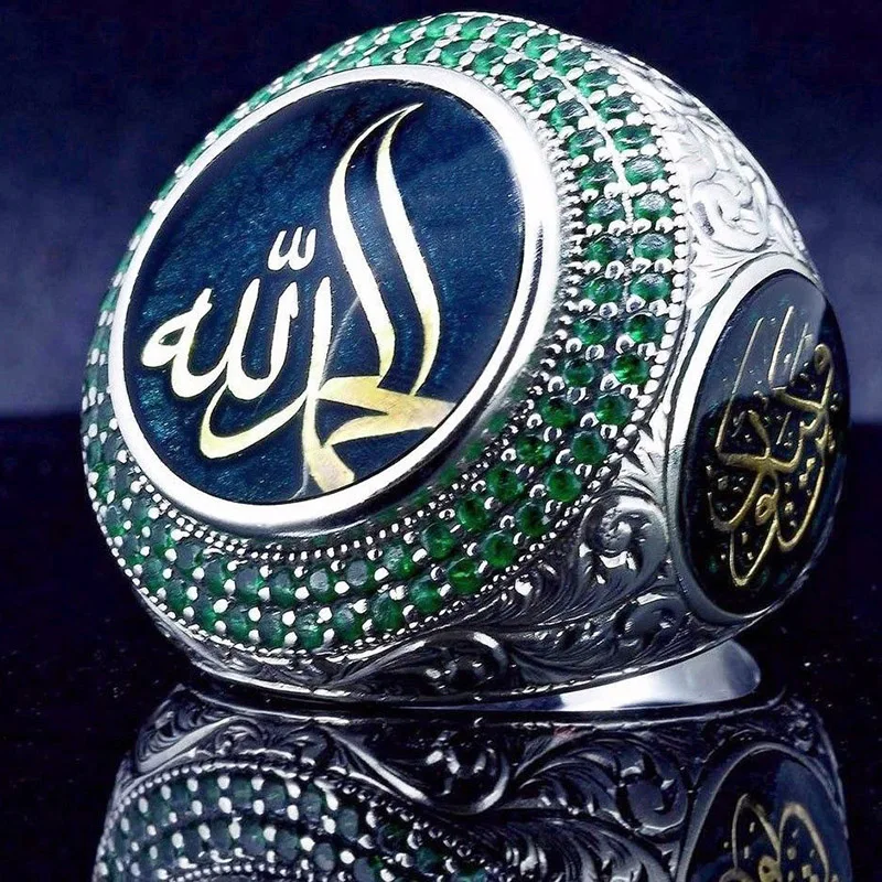 Кольцо мужское с узором руны, религиозное мусульманское кольцо с зе...