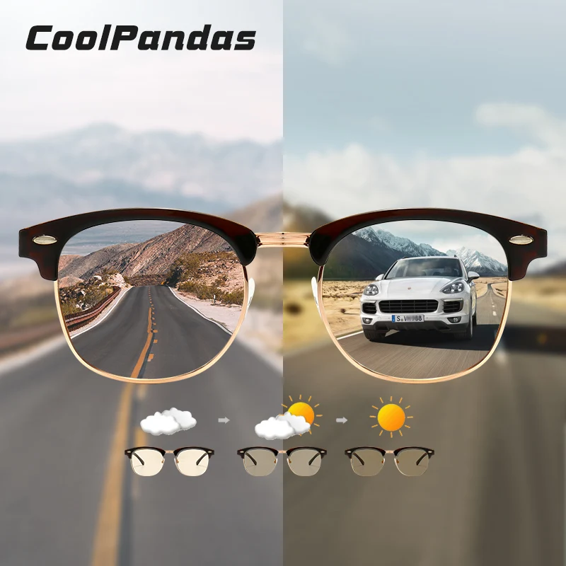 Солнцезащитные очки с полуоправой для мужчин и женщин, квадратные поляризационные фотохромные очки для вождения, трендовые очки, 2021