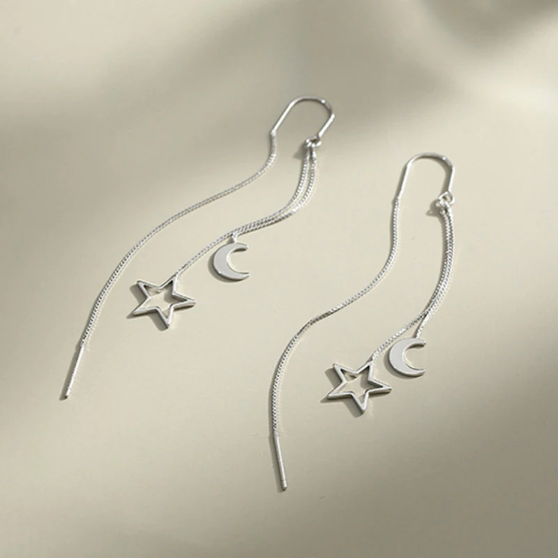Серьги с бахромой и Луной для женщин и девушек, Ювелирное Украшение серебристого цвета с полой звездой и луной, хороший подарок на день рождения