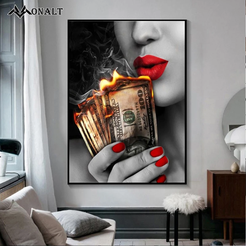 Сжигание денег и женщин холст ПЕЧАТЬ Плакаты для комнаты настенное искусство картина Скандинавское творчество HD рисунок декоративные картины