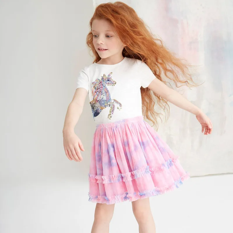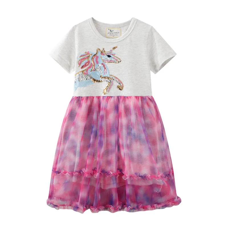 Детское летнее хлопковое платье с бисером, в виде единорога