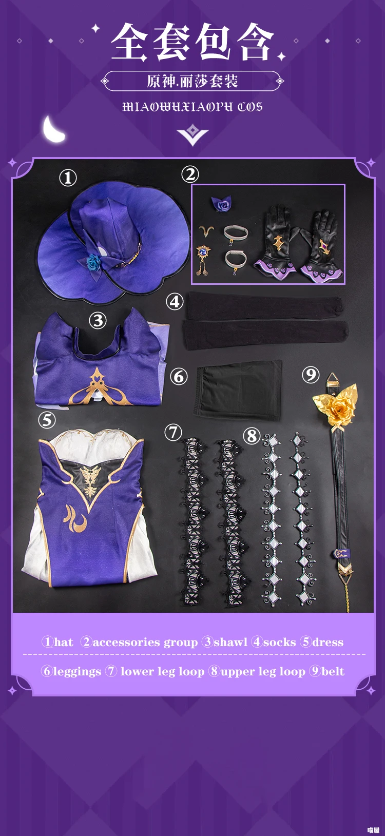 Включает:①Hat ②accessories группа ③shawl ④socks ⑤dress ⑥leggings ⑦ голени петля ⑧upper петля ноги ⑨belt 。