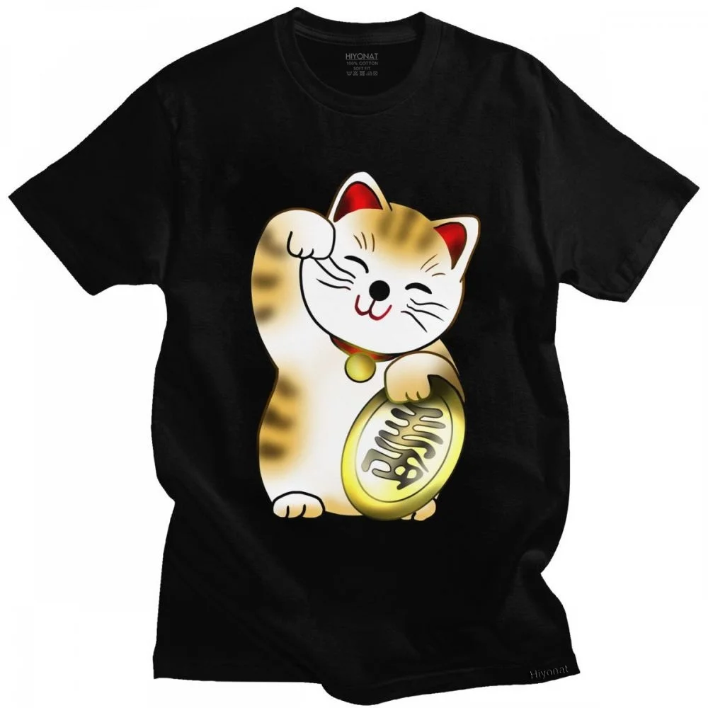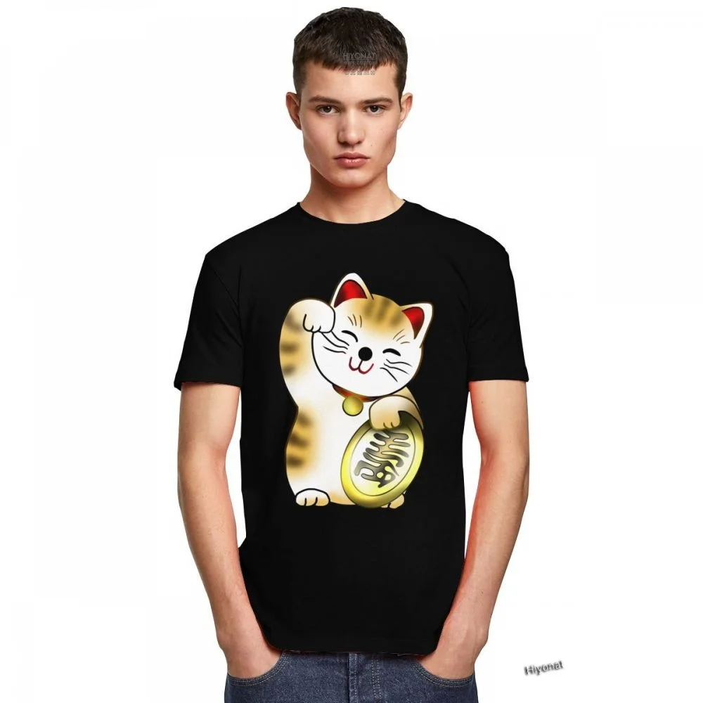 Футболка мужская с короткими рукавами, смешной топ с принтом Кот удачи и монетами, уличная одежда свободного покроя, мягкая хлопковая одежда