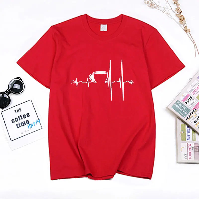 Футболка мужская из 100% хлопка, с принтом сердцебиения ЭКГ, с круглым вырезом