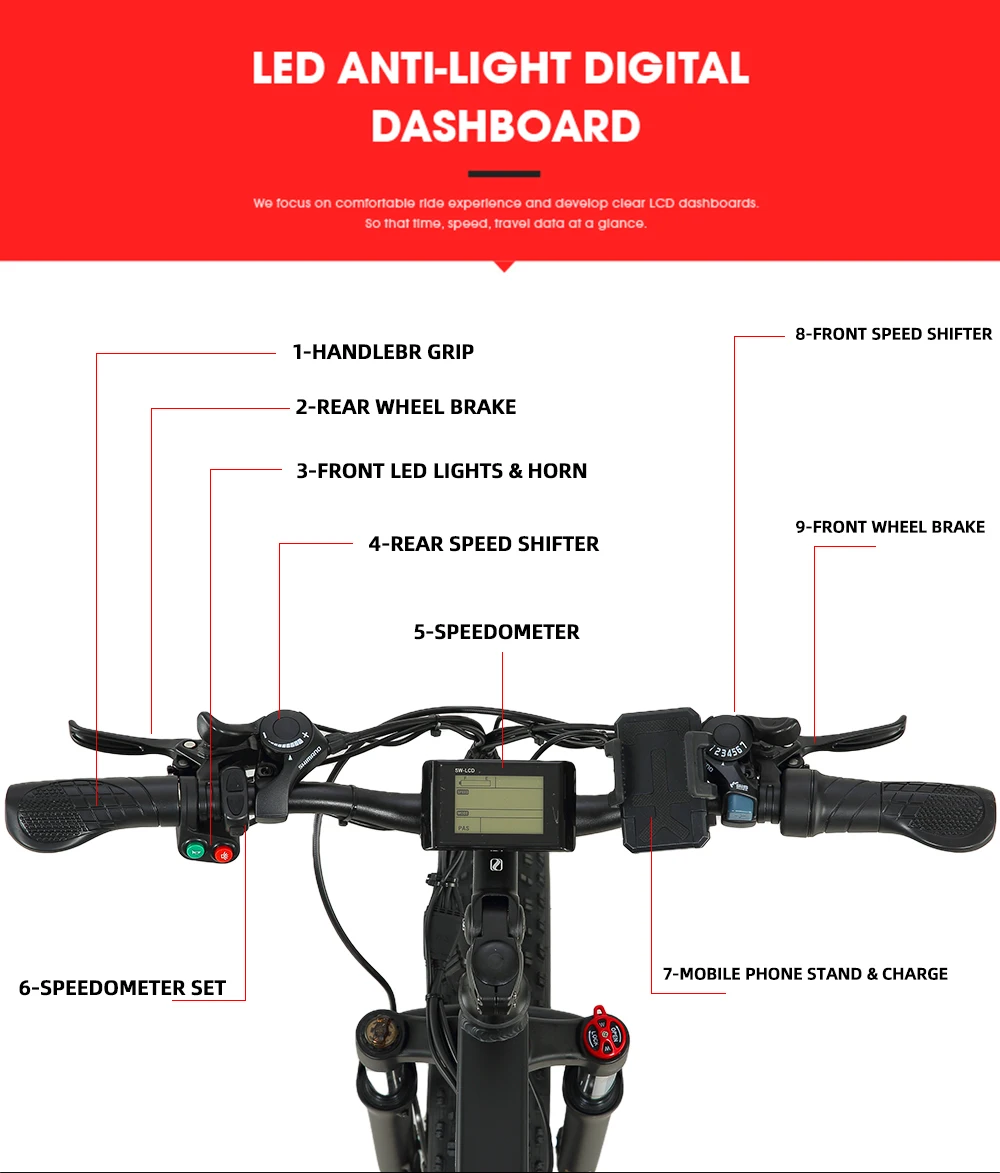 ✅【 1000 Вт * 48 в * 12.8Ah 】 48 в * 1000 Вт бесщеточный двигатель, сильная мощность добавит удовольствия в ваше путешествие. Максимальная скорость двигателя составляет 40 км/ч, а скорость вращения может достигать 35 ° в общем дорожных условиях. Двигатель имеет функцию ограничения скорости (20 км/ч до 50 км/ч опционально). Аккумулятор 48V * 12.8Ah LG Li может удовлетворить ваши потребности в езде, когда вы находитесь на дальнем велосипеде. Аккумулятор поддерживает около 900 циклов перезарядки.✅【Безопасная конструкция для верховой езды 】 рама из алюминиевого сплава-это рама из прочного алюминиевого сплава 6061, который имеет светильник и прочен. Гидравлические дисковые тормоза сделать вашу поездку туда и обратно эффективным способом доставки, 26x4,0 дюймов жира шин может сделать вождение более стабильным, чтобы удовлетворить все дорожных условий, таких как снег, дороги, пляжи, MTB горный велосипед. Прочная высокопрочная вилка из углеродистой стали и 21 система переключения скоростей обеспечат вам комфортную и безопасную езду.✅【 3 рабочий MODES】 Assist вспомогательный режим педали: двигатель поможет вам с умеренным количеством мощности, как вы педаль велосипеда. В этом режиме вы можете управлять 75-100 км (в зависимости от веса) перед зарядкой. ❷Полностью Электрический режим: поверните дроссельную заслонку с любым шагом мощности, который вы хотите включить двигатель велосипеда. В его режиме, он имеет около 50 км Диапазон батареи. ❸Ручной режим: педаль велосипеда обычно, как вы бы любой велосипед.✅【FREE gift】 зарядное устройство * 1, крылья, насос, инструменты, фары, динамики, багажные стойки, (некоторые элементы уже установлены на e-bike). 【Примечание. Доставка данного товара займет около 25-30 дней. Мы вышлем дополнительные бесплатные подарки, в том числе 40L горный мешок, Bluetooth динамик, алюминиевый Мобильный держатель.✅Гарантийный регламент 】 рама и гарантия двигателя: 365 дней. Гарантия на батарею: 180 дней. 95% предварительно собранных при получении велосипеда. Послепродажный центр находится в Бельгии и может дать вам быстрый ответ. Любые вопросы о предварительной продаже или после продажи, просто свяжитесь с нами в любое время.