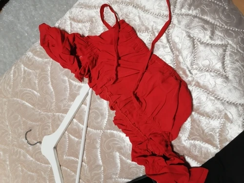 Топ бракованный. Резинки либо вообще нет, либо она лопнувшая. Не рекомендую. С продавцом не общалась.