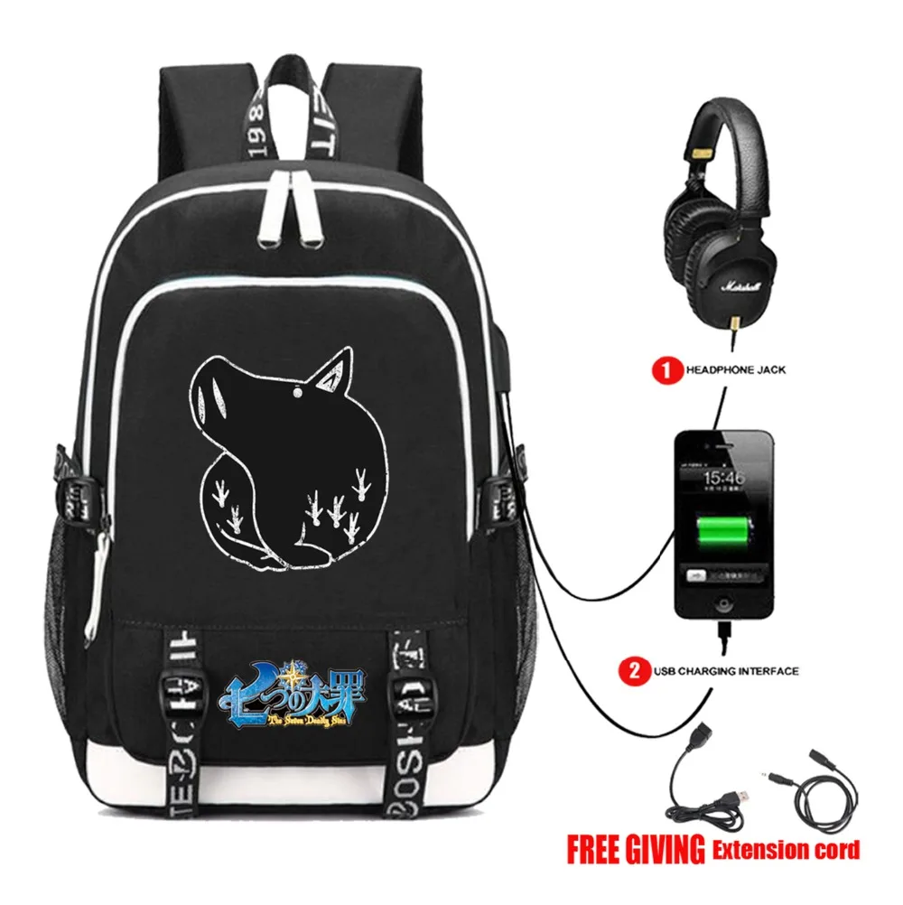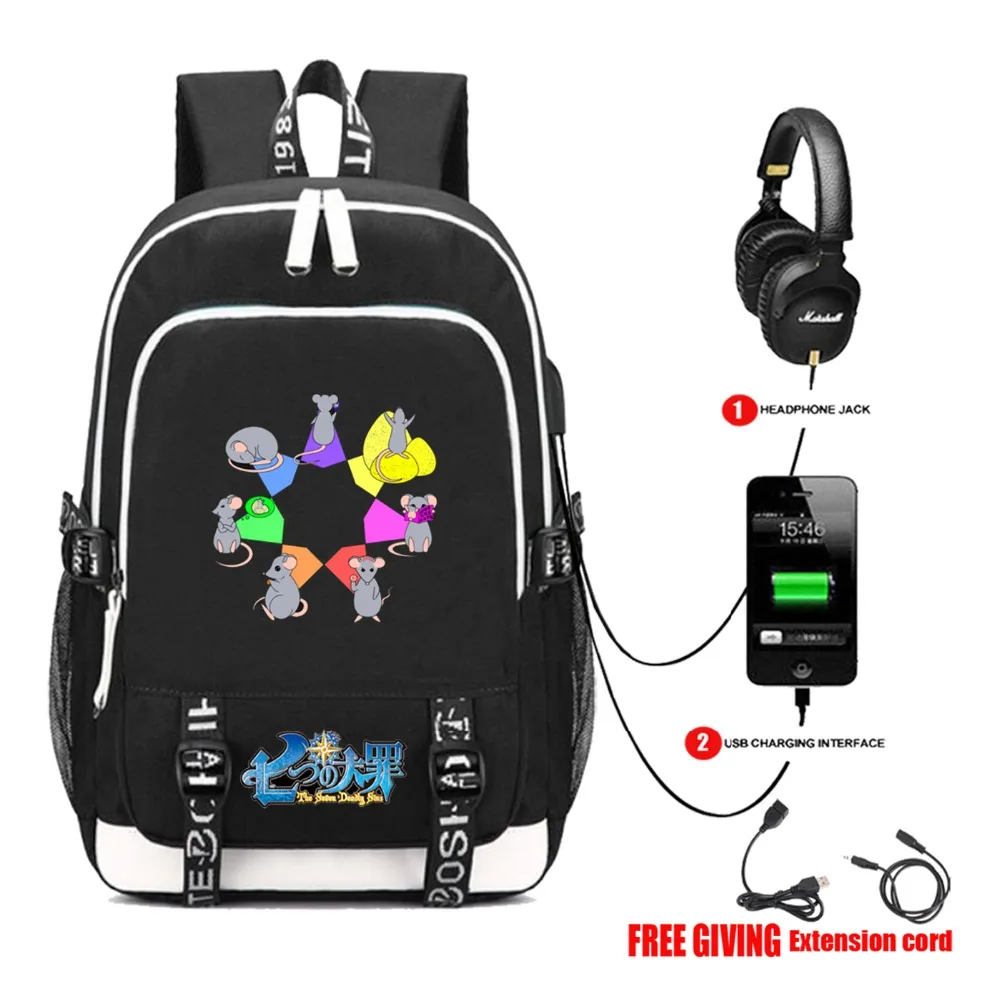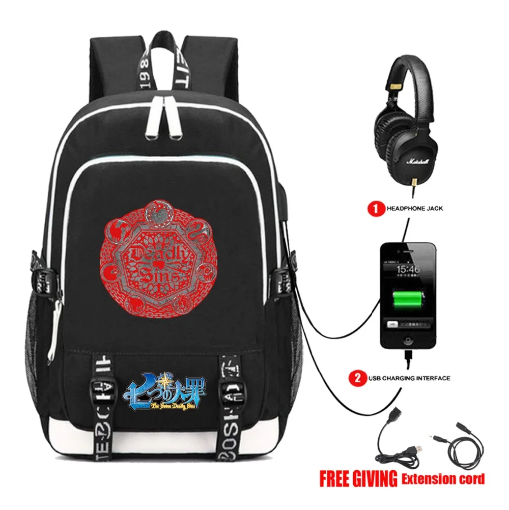 Рюкзак с аниме Семь смертных грехов nanatsu no taizai, USB-разъем для зарядки и наушников, студенческий рюкзак, Подростковая дорожная сумка для ноутбука