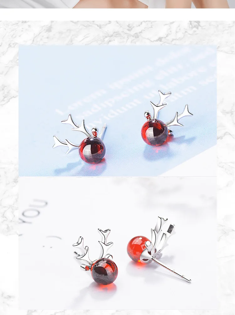 Женские серьги на удачу из серебра 925 пробы, с рогами, гранатом