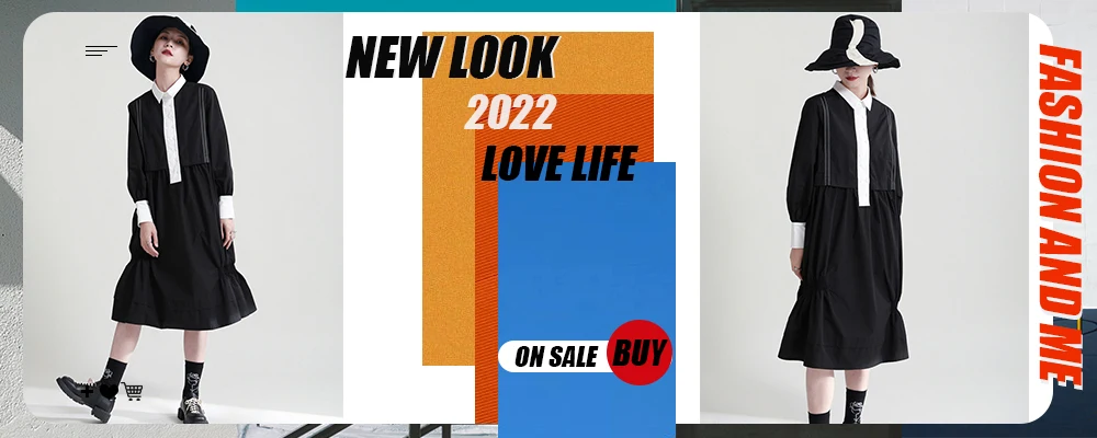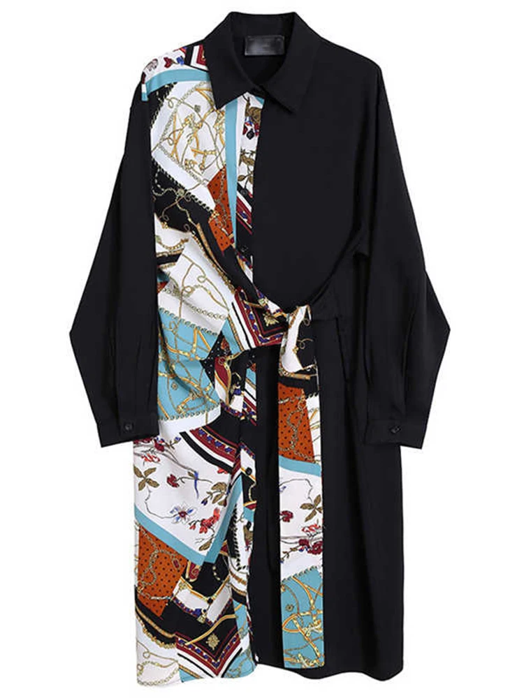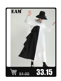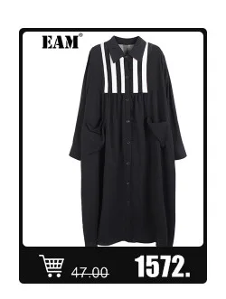 Женское платье с длинным рукавом EAM, свободное платье большого размера с отложным воротником, весна-осень 2022, 1DD3632
