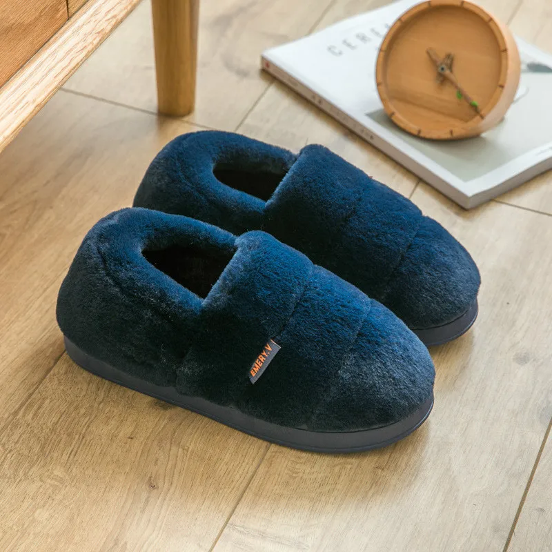 Мужские зимние хлопковые Slids домашние тапочки; Сезон зима мужские однотонные Цвет простые теплые плюшевые тапочки на толстой подошве; Домашняя мужская обувь
