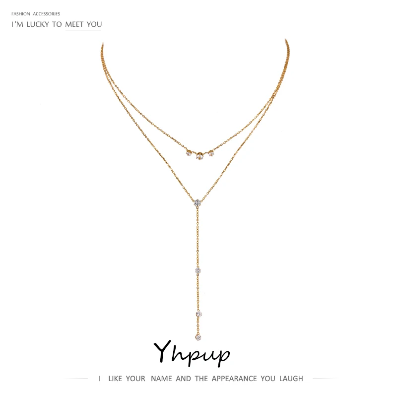 Изысканная цепочка Yhpup с кубическим цирконием, многослойное длинное ожерелье с кулоном для женщин, цепочка из нержавеющей стали 18 карат, чокер, ожерелье, аксессуары