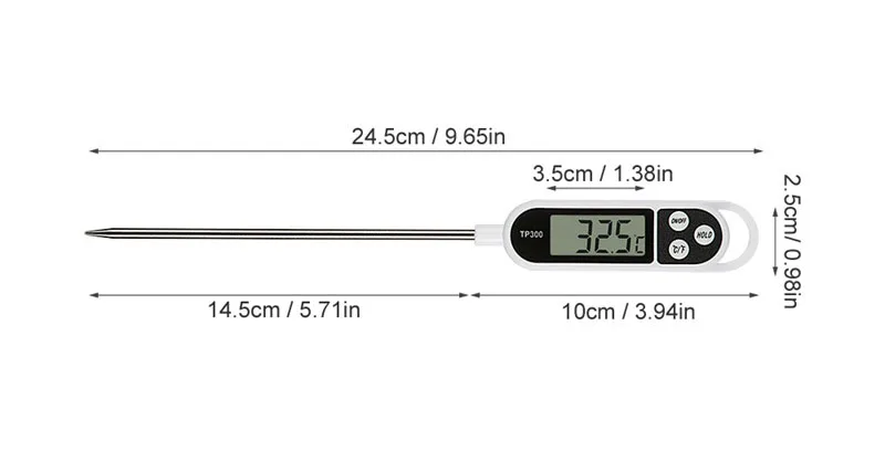 Особенности:Конструкция ручки, зонд из нержавеющей стали, высокая точность, быстрое измерение температуры.Это может быть используется для домашней кухни или барбекю.ЖК-дисплей для увеличения диапазона измерений, высокой стабильности.Маленький размер, легко носить с собой, его можно легко положить в сумку или карман.Для измерения лучшей температуры для детского питания.Описание:Вы легко получаете показания температуры от вашего приготовленного мяса с ним.Подходит для любых кухонных приборов, таких как холодильники, печи, микроволновые печи и т. д.Очень полезный инструмент для измерения внутренней температуры мяса, такой как жаровня и стейки или другие приготовленные продукты. Характеристики:Материал: металлДлина зонда: 150 ммДиапазон температур: -50 °-300 °(-58 - 572 по Фаренгейту)Время реакции: 5 секундБатарея: батарея для монет (1 * LR44)(не входит в комплект)Разрешение: 0,1 °C/0,1 ° FПосылка включает в себя:1 х термометр для еды Примечания:1. Из-за разницы между различными мониторами изображение может не отражать фактический цвет изделия.2. Из-за различных личных методов измерения возможна погрешность в 1-3 см. Спасибо!