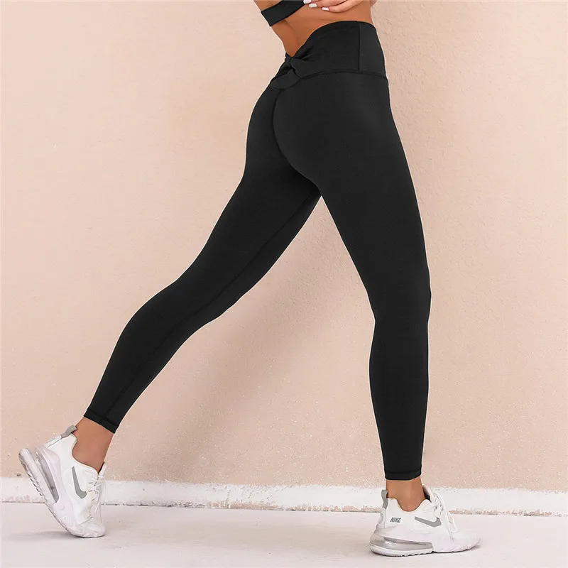 Новые спортивные облегающие брюки, женские леггинсы для фитнеса, нейлоновые Длинные повседневные брюки до щиколотки с высокой талией, женские Леггинсы пуш-ап с бантом, одежда для спортзала