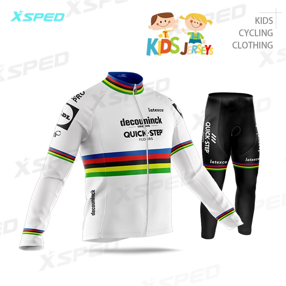 Чемпион мира 2020 детский трикотажный комплект для велоспорта детская одежда для езды Quick Step Джулиан Alaphilippe с длинным рукавом Велосипедный спорт форма для мальчиков
