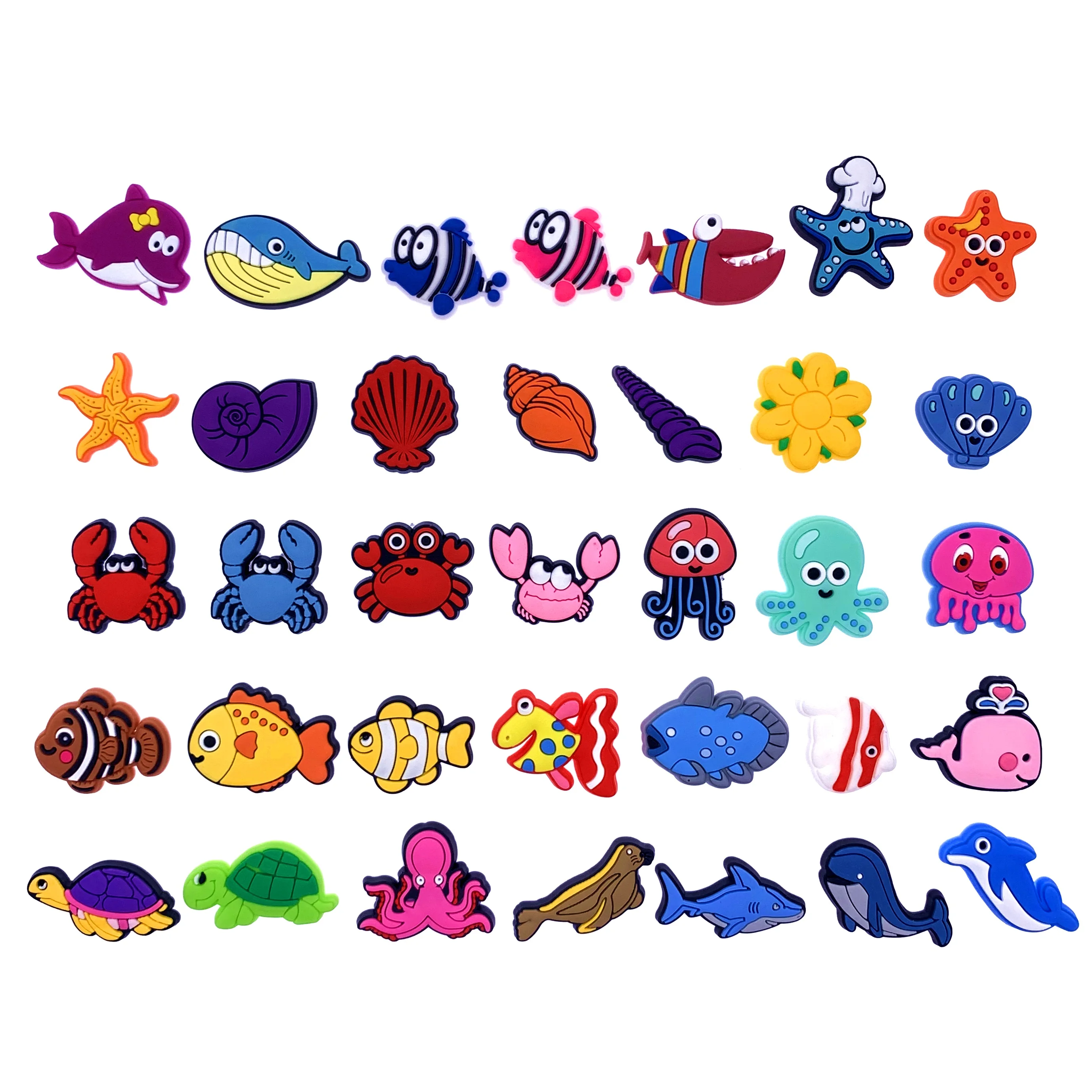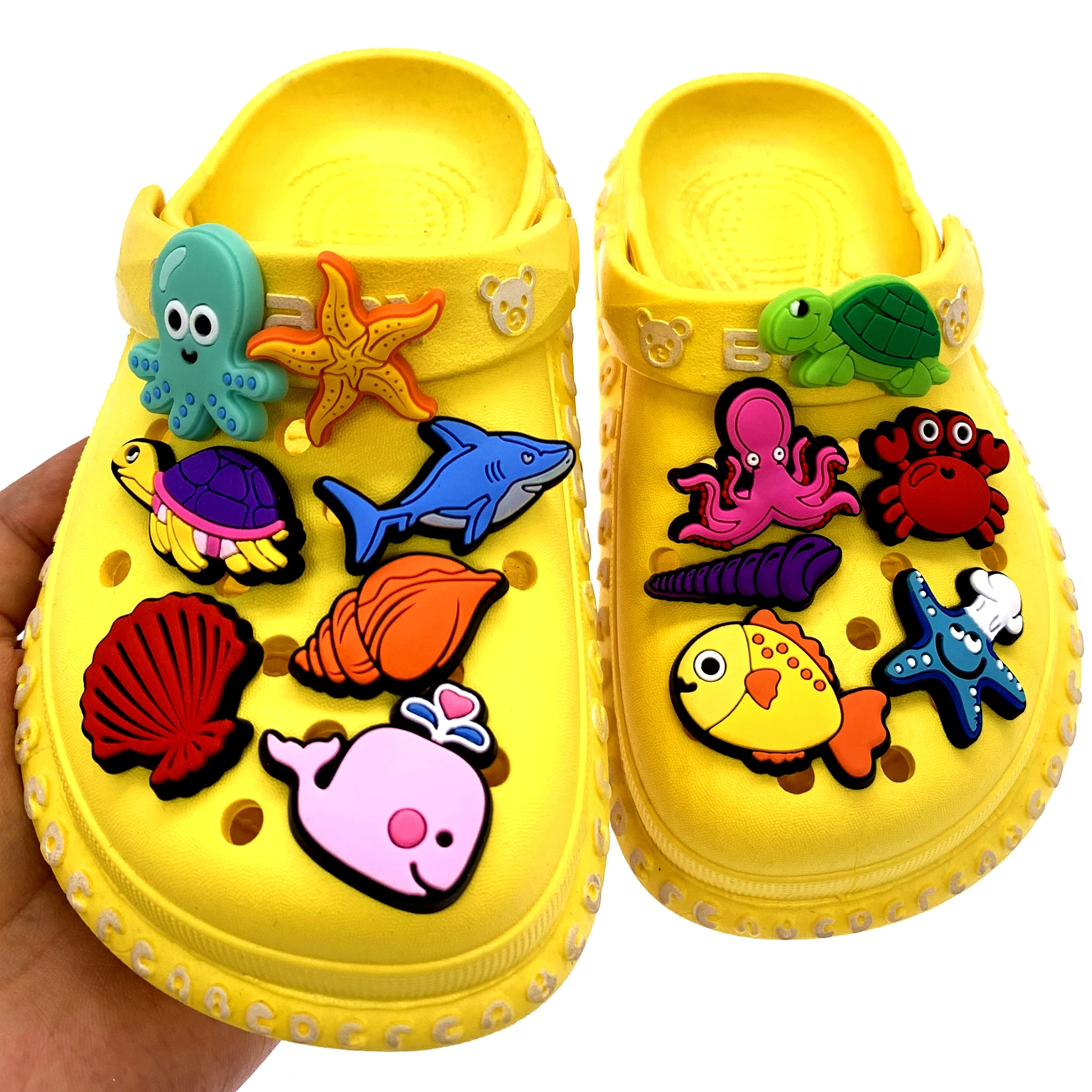 Лидер продаж, подводная серия обуви, амулеты из ПВХ с мультяшными животными, украшение в виде краба, браслет с отверстиями, аксессуары в виде тапочек, детские подарки, 1 шт.