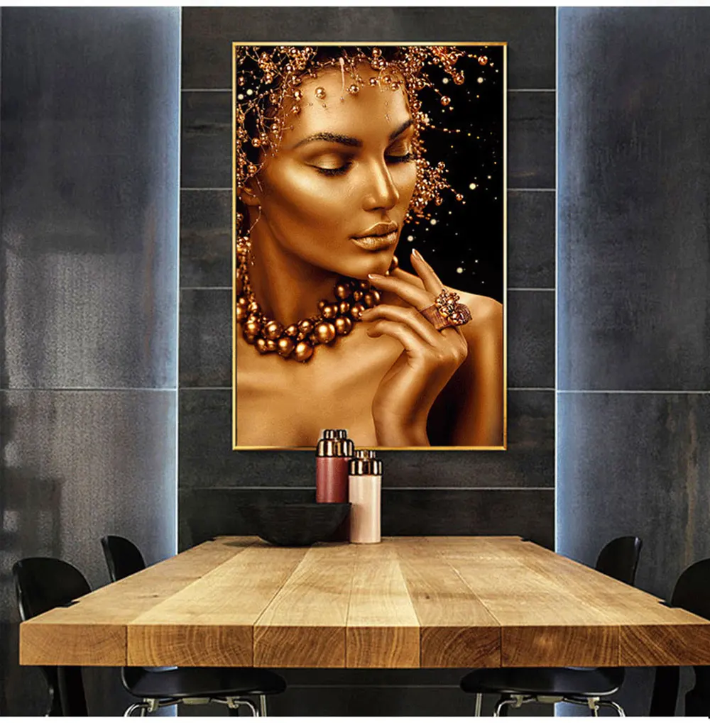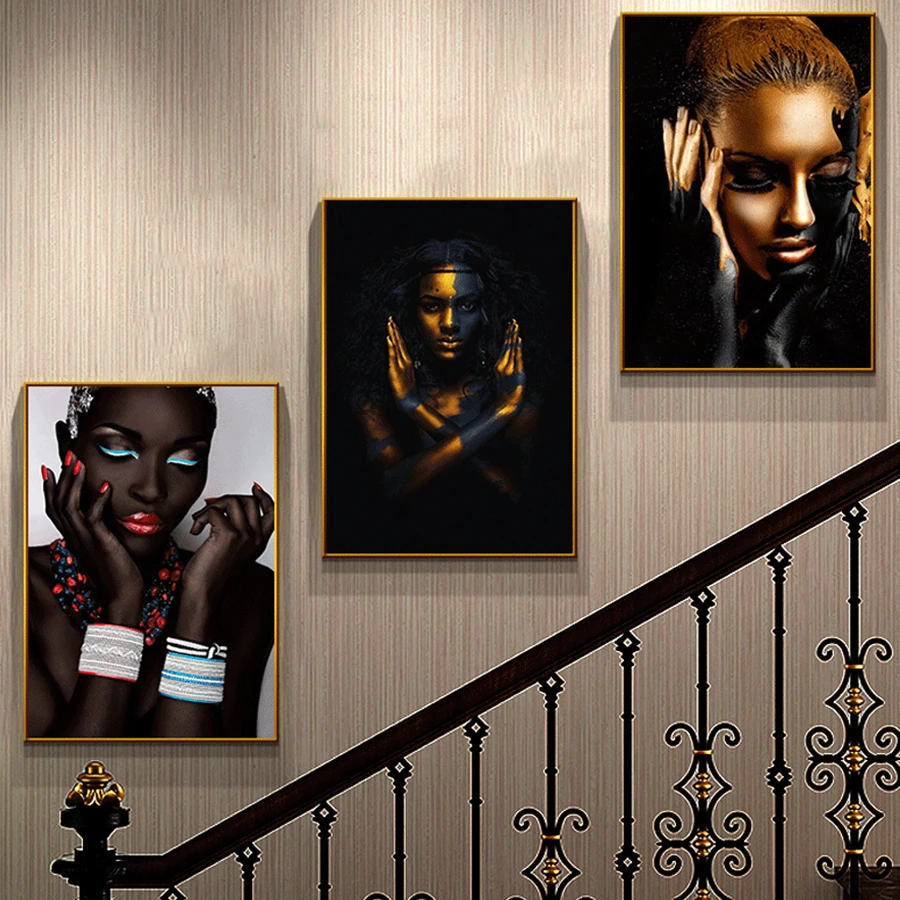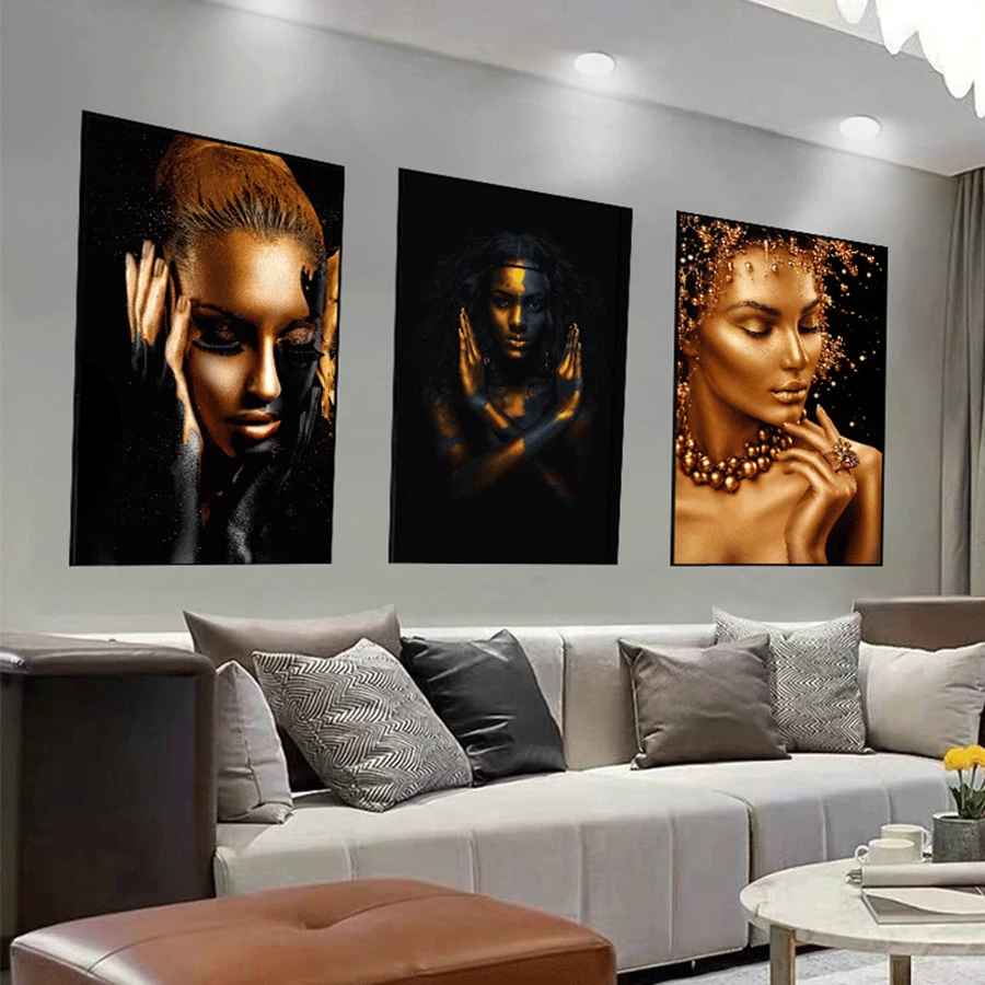 Ahживопись на холсте, Настенная картина, фигурка, Африканское искусство, плакат с черной и золотой женщиной, печать, картина для гостиной, домашний декор