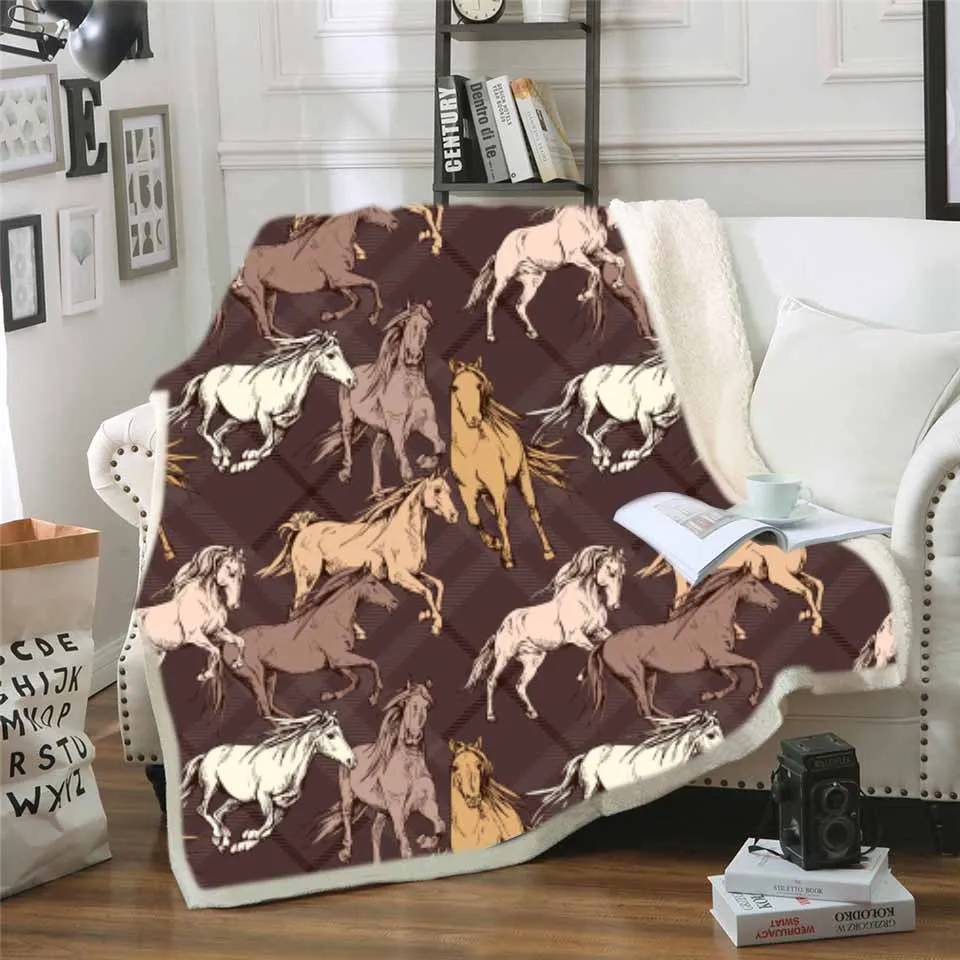 Теплое одеяло с 3D рисунком галиющей лошади и животных, мягкое шерстяное ТВ-одеяло, постельное белье для путешествий, Детские простыни для кровати