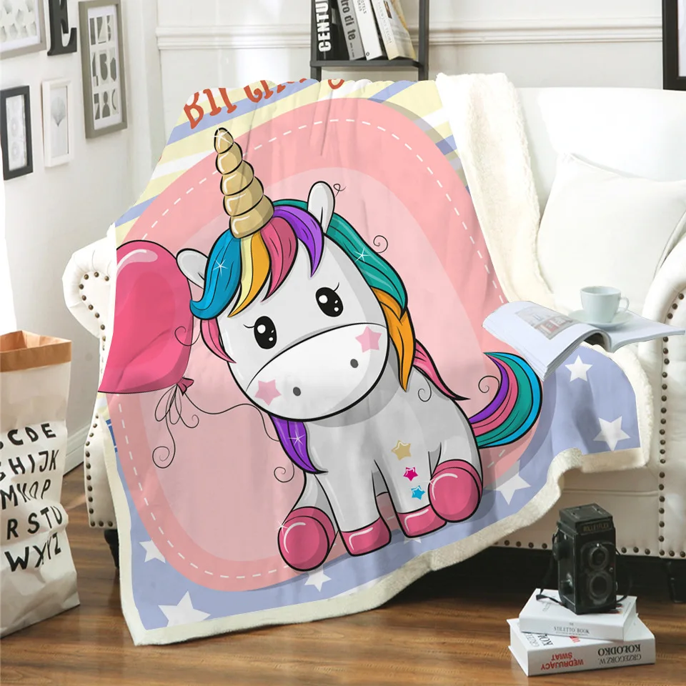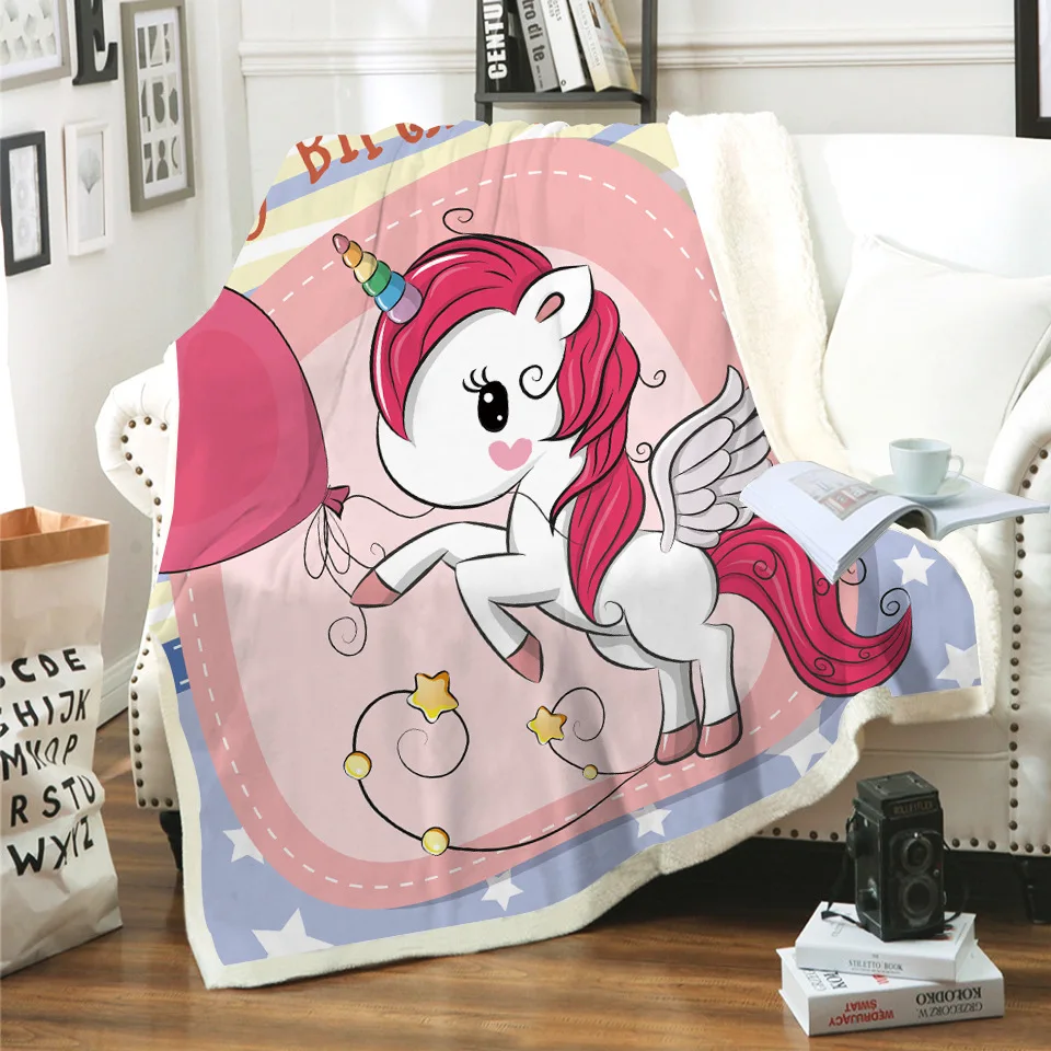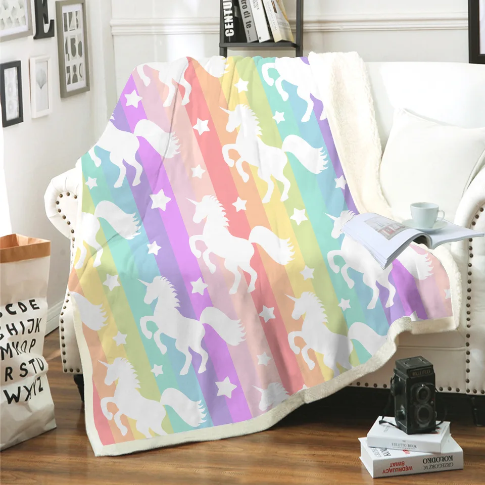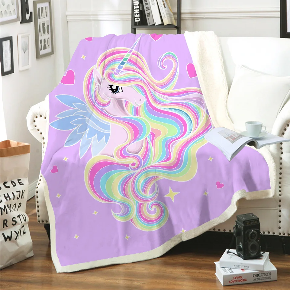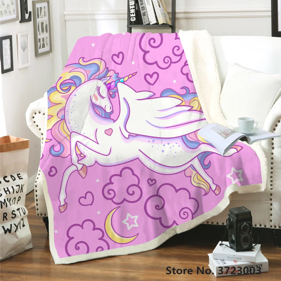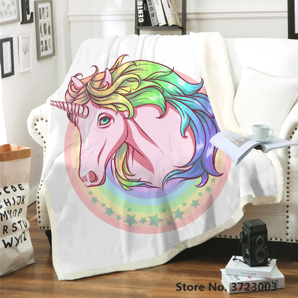 Новый 3D радужной расцветки с принтом Единорог, шерпа одеяло покрывало Бархатные плюшевые мягкие удобные детская спальня мультфильм декоративный домашний текстиль