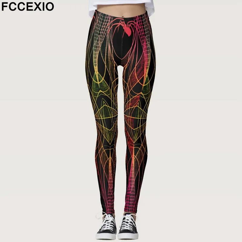 Женские леггинсы FCCEXIO с 3D принтом, эластичные женские повседнев...
