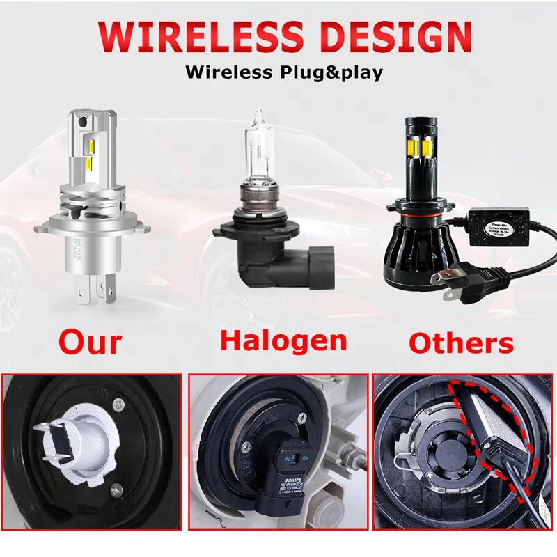 Светодиодные фары H7, светодиодсветодиодный фары H11 9012 H4 H8 H9 9005 9006 HB3 HB4 4300K 6000K 8000K с чипом CSP, фары дальнего и ближнего света без вентилятора, беспроводные 12 В 24 В