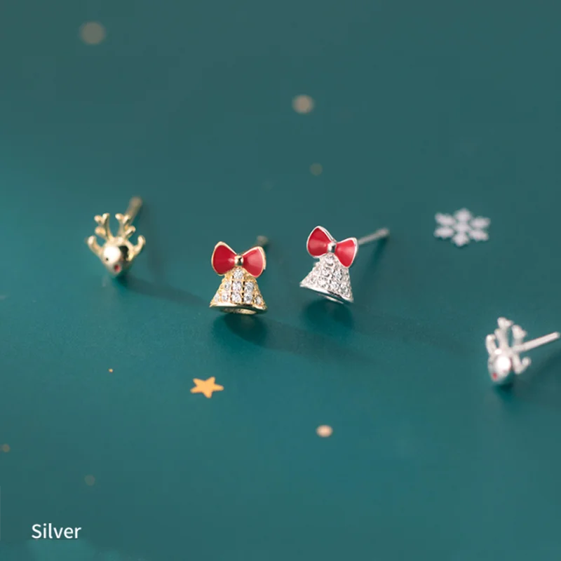 Женские серьги-гвоздики с колокольчиком из настоящего серебра 925 пробы с золотым оленем, 2020 в Корейском стиле, Подарочная бижутерия для вечеринки на Хэллоуин