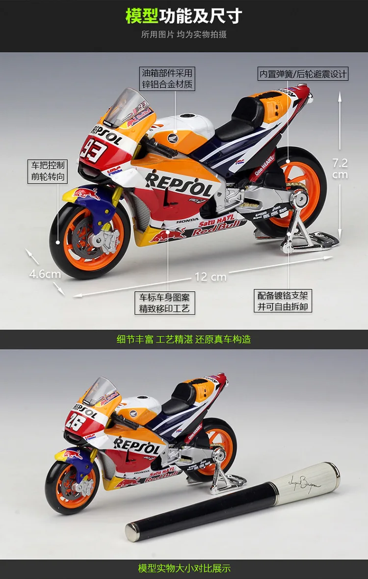 Модель мотоцикла Maisto 1:18 Repsol HONDA Team RC213V Motogp, сувенирная игрушка, коллекционная мини-мото литье под давлением