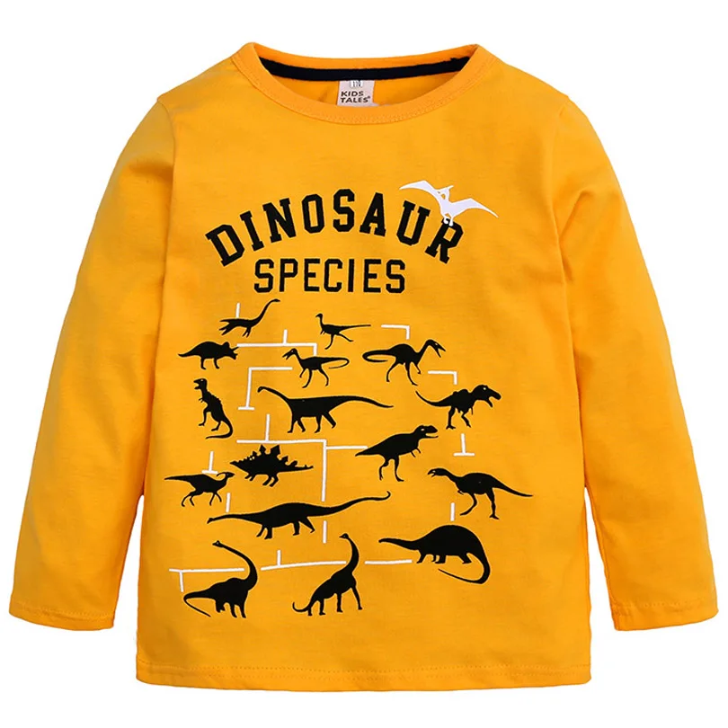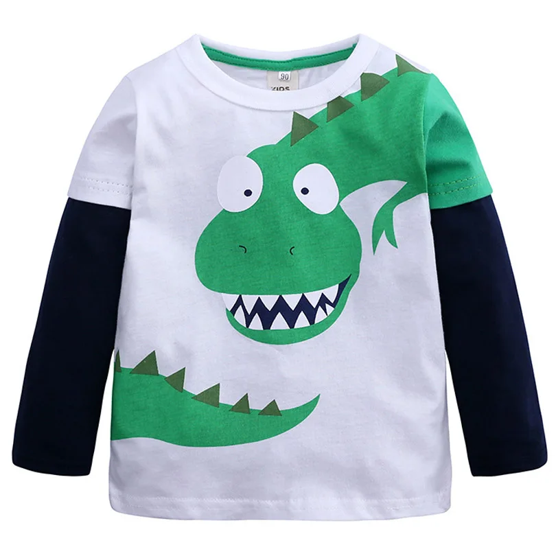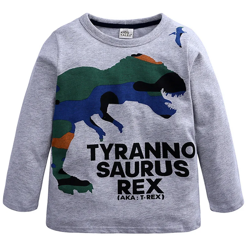 Футболка с длинным рукавом и мультипликационным динозавром для мальчиков, Детские хлопковые топы для мальчиков, футболки, весенне-Осенняя детская одежда