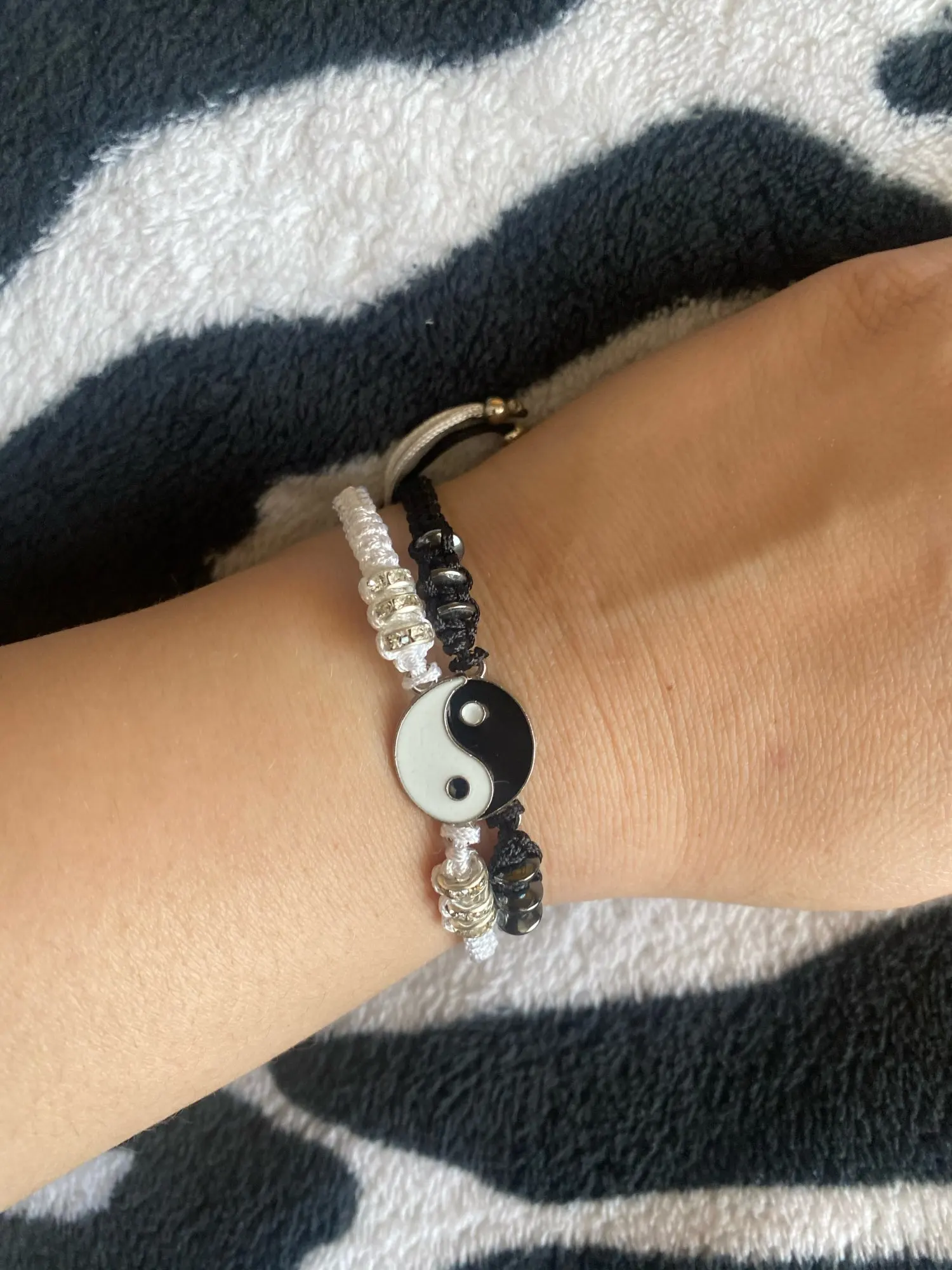 Браслет очень хорошего качества, правда, у меня запястье 14 см, и он на руку оказался великоват, болтается, из-за чего половинки не ложатся друг в друга. Зато он отлично смотрится на ноге :D Летом будет шик! Очень довольна, что купила.