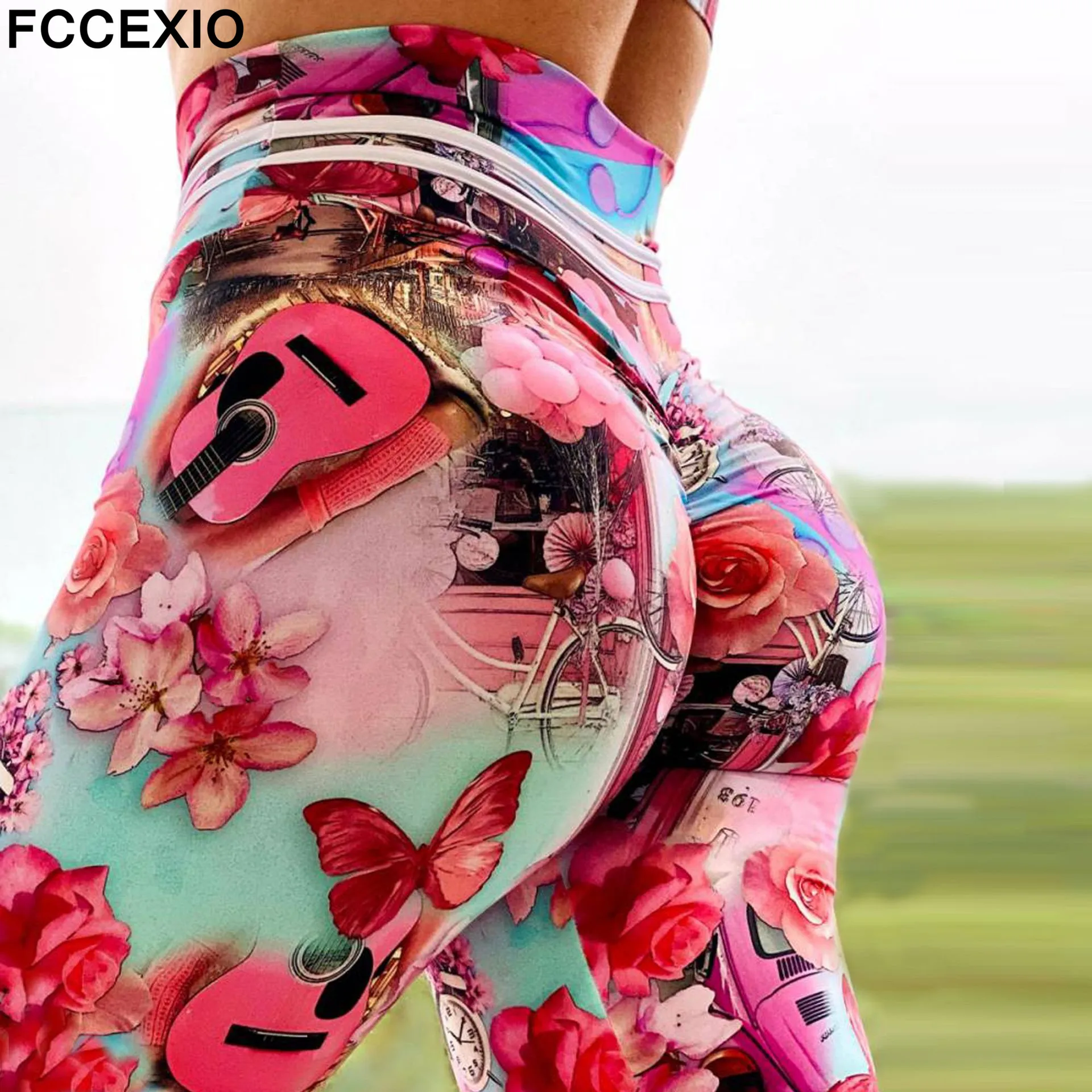Женские леггинсы FCCEXIO, модные леггинсы для фитнеса, с цифровым п...