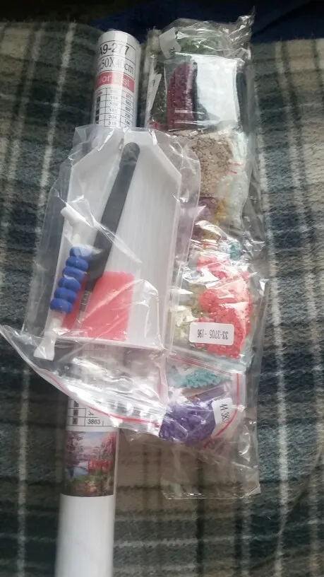 заказ пришел за месяц. 2 мозаики были упакованы в один пупырчатый почтовый пакет. полотно намотано на валик и запаяно в целлофан. стразы все на месте, упакованы по зип-пакетикам. Весь инструмент тоже на месте. спасибо