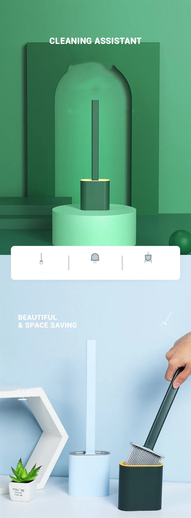 Силиконовая щетка для унитаза, настенная Гибкая мягкая щетка с плоской головкой в скандинавском стиле, кронштейн для быстрой сушки