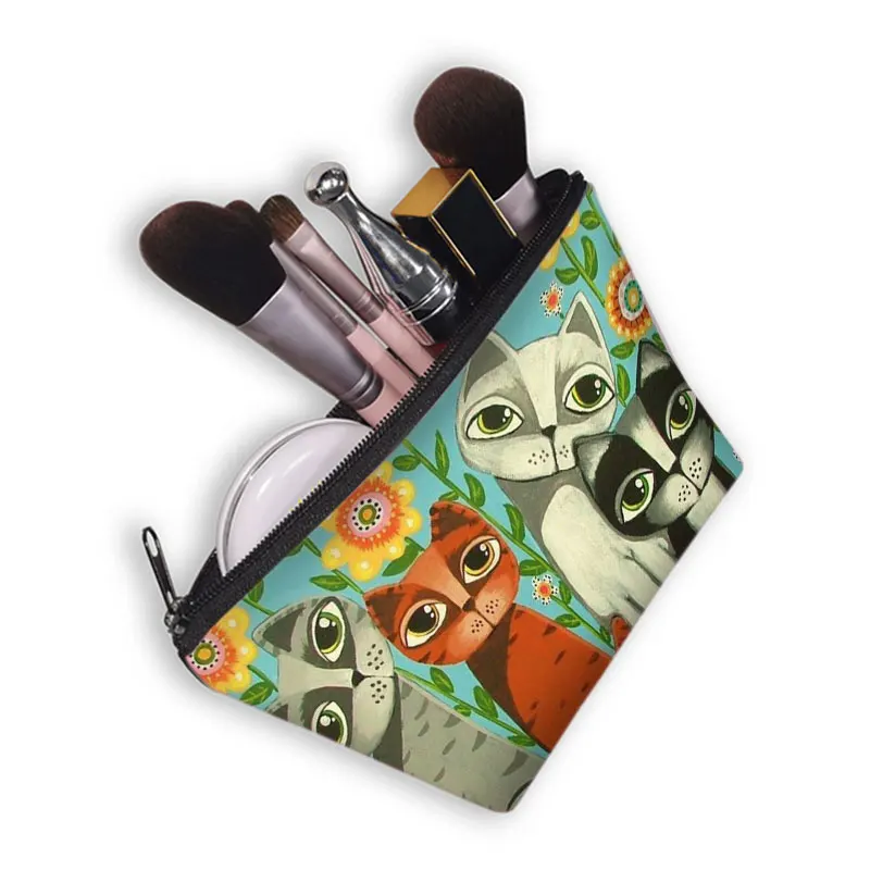 Чехол для косметики для женщин с милым принтом кота, сумочка для косметики с мультяшным котенком, сумка для хранения забавной кошки для косплея Моны Лизы