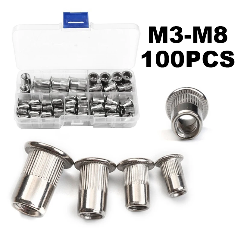 100 шт. набор гаек с заклепками из нержавеющей стали