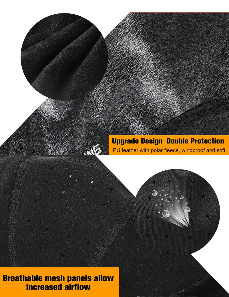 Материал: из искусственной кожи; Эластичный бархат; Сетчатый ветрозащитный материал три в одномЦвет: черныйВес нетто: около 100 гПодходит для: езды на велосипеде, мотоцикле, катания на лыжах, рыбалки, альпинизма.Подходящий сезон: зимаОсобенности: ветрозащитный, водонепроницаемый, сохраняет тепло