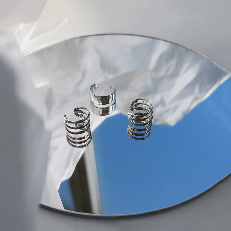 Серьга-клипса с клипсой для женщин, многослойная серьга-клипса без пирсинга из 925 пробы серебра, S-E1353, 1 шт.