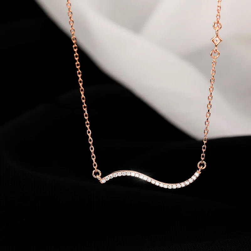 Ожерелье-волна из серебра 925 пробы для женщин, сверкающее ожерелье-цепочка длиной до ключиц с фианитом, ювелирные изделия, S-N731