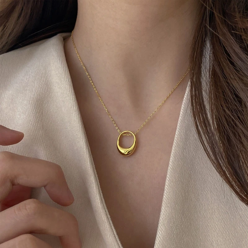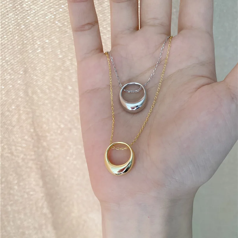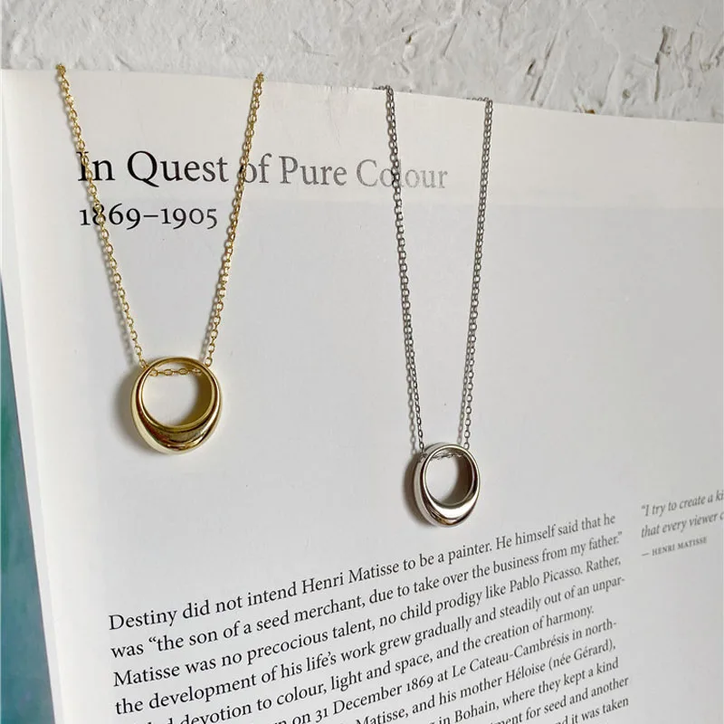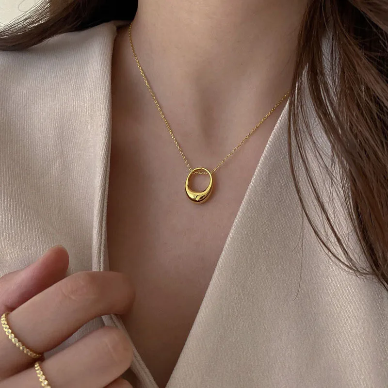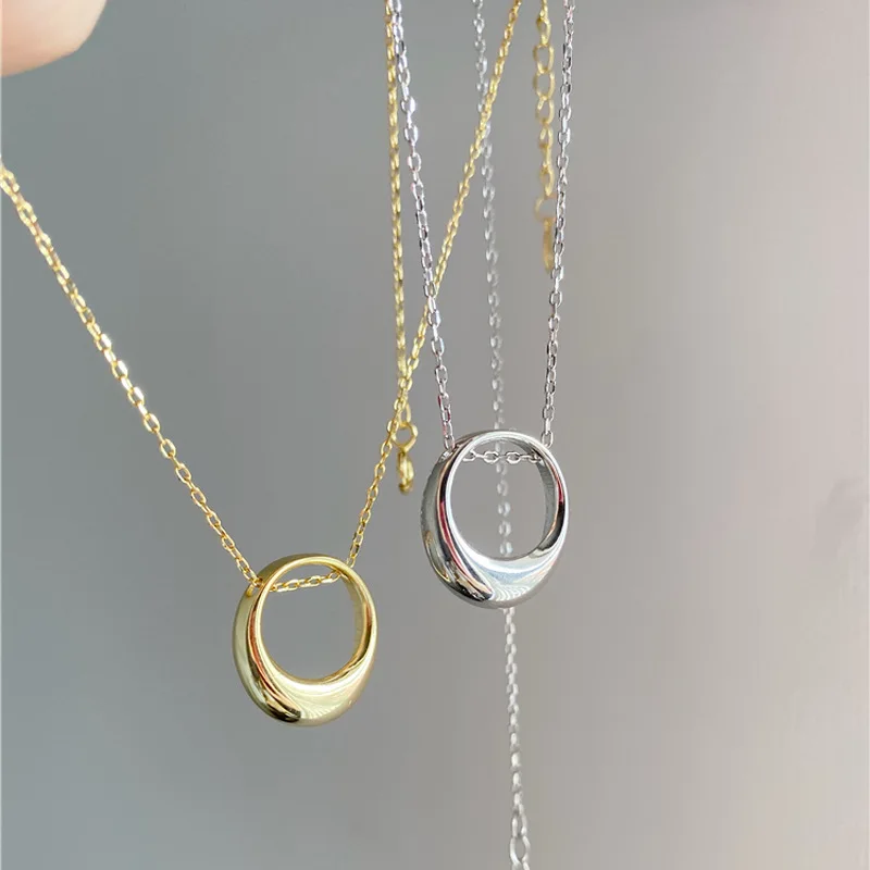 Ожерелье из стерлингового серебра 925 пробы для женщин, Геометрическая полость, цепочка до ключиц Овальный Круглый, ювелирные изделия, подарки S-N740