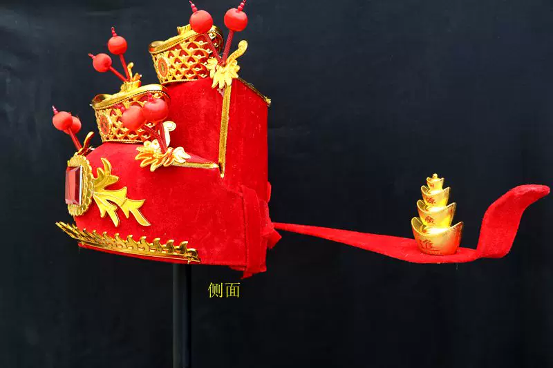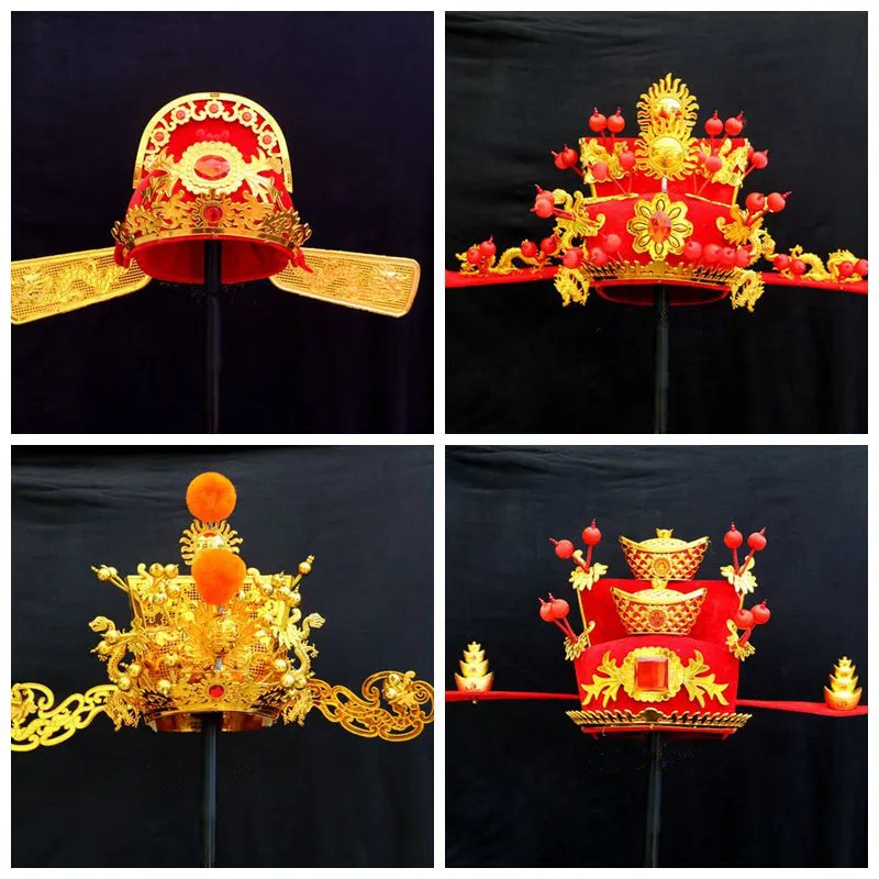 Китайский новый год Бог богатства, головной убор для косплея Для Взрослых Свадебные Жених кепки Забавные костюмы Аксессуары компания фестиваль праздничный реквизит