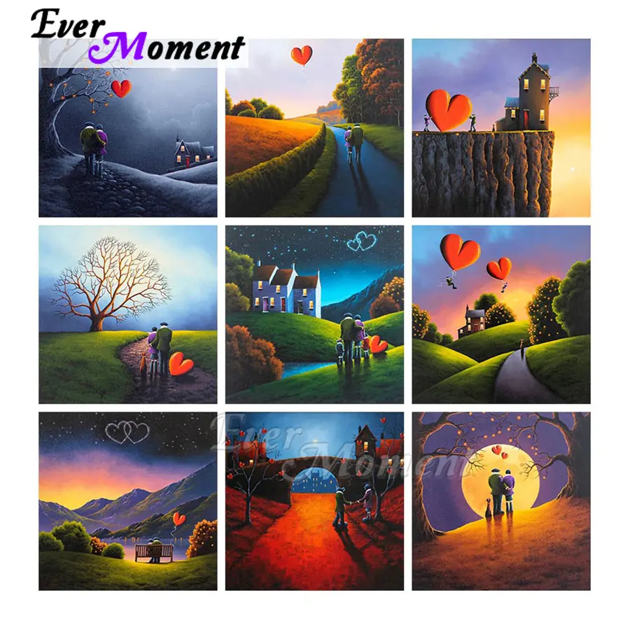 Алмазная живопись Ever Moment, настенное художественное украшение, пара, мультяшное сердце, дерево, картина из кристаллов, мозаика ручной работы S2F2725