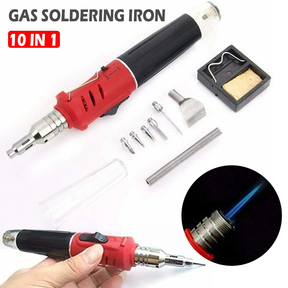 Комплект газового паяльника, Бутановая Сварочная горелка, тепловая пушка, автоматическое зажигание, наборы паяльников 10 в 1