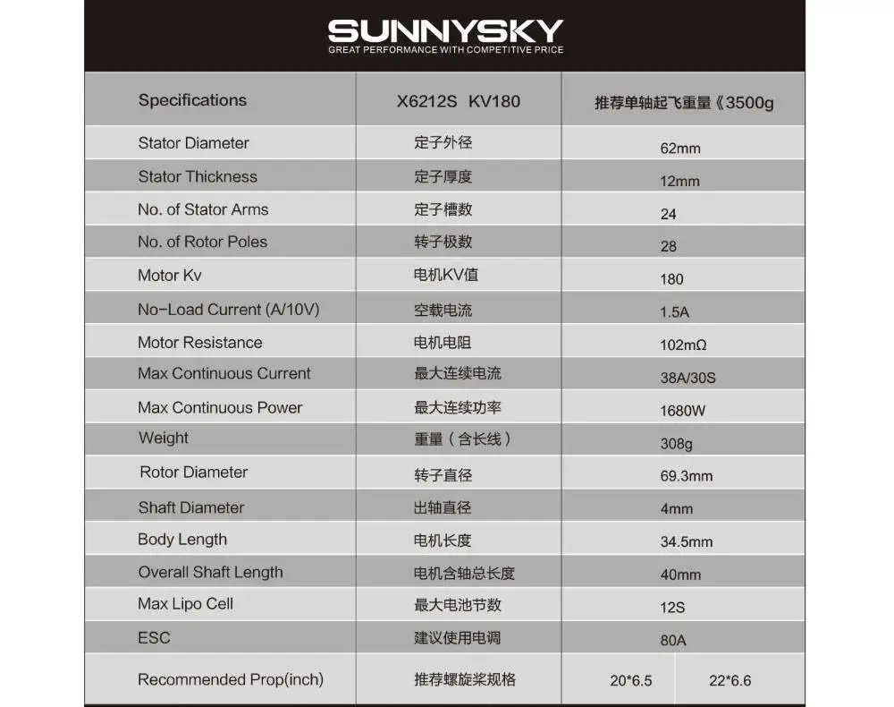 Номер моделиSunnysky X6212S Brushless Motor