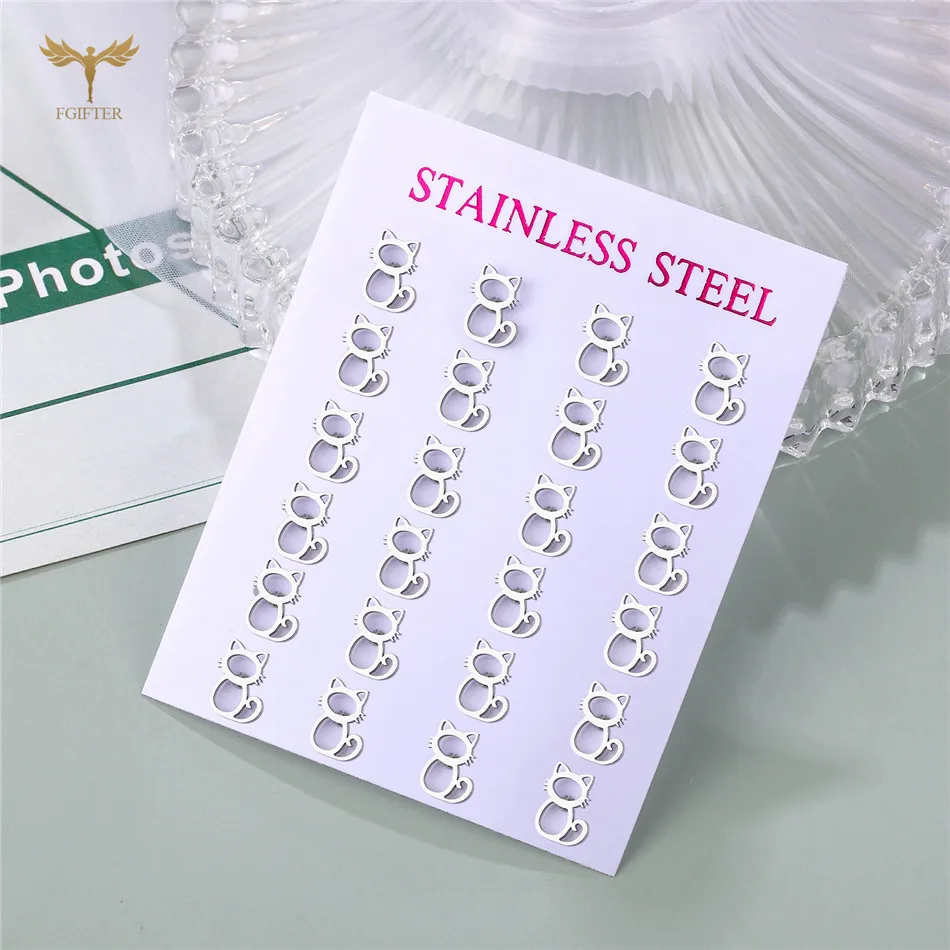 Женские серьги-гвоздики из нержавеющей стали, 12 пар в комплекте