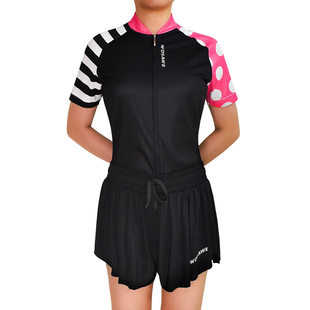 WOSAWE женский триатлон с коротким рукавом, велосипедные комплекты Джерси, кожаный костюм, одежда для велоспорта, велосипедные рубашки, юбка, костюм