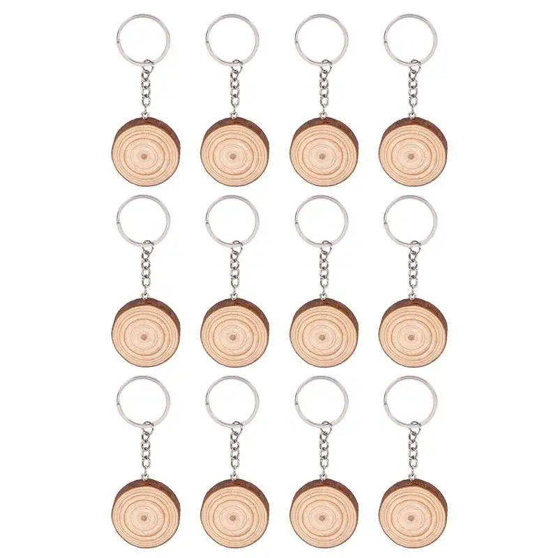 12 шт деревянный брелок DIY Одежда с ручной росписью, брелки для ключей, творческий брелок для ключей DIY Ручная роспись круглый сосновая древисина брелок