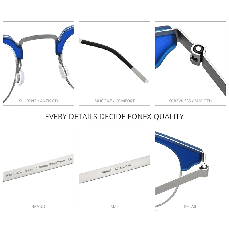 FONEX ацетат сплава очки рамки Для мужчин Круглый близорукость очки по рецепту, Для женщин Для мужчин 2021 новый корейский безвинтовое 98627