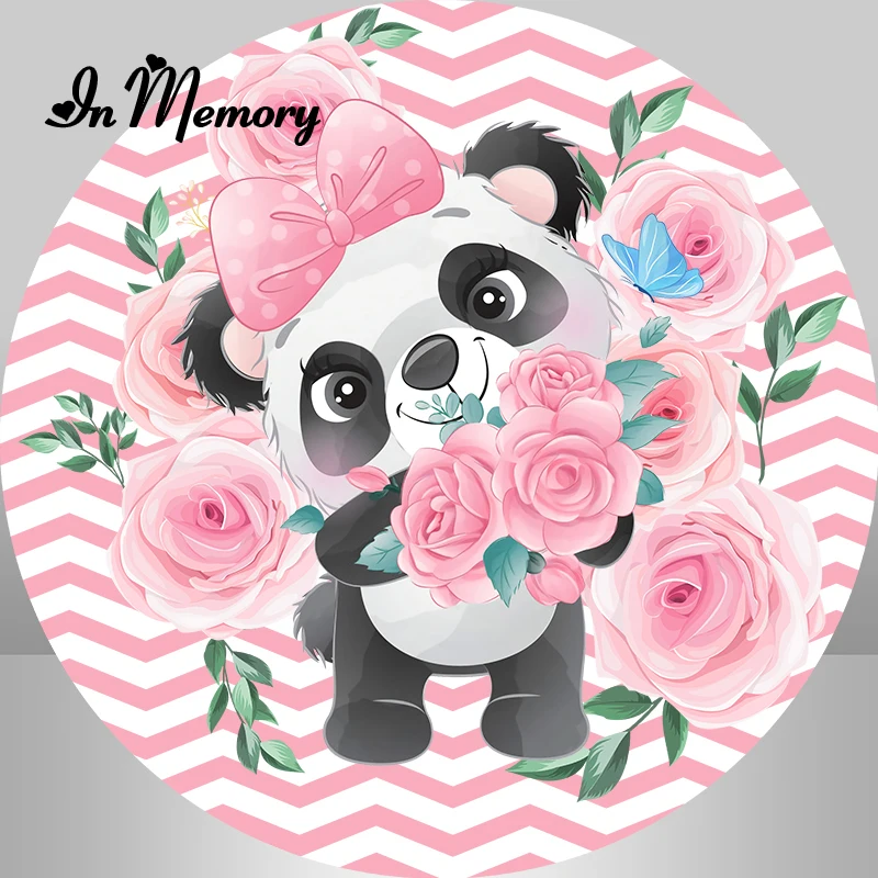 InMemory фоны для фотосъемки с изображением круга розовых белых полосатых цветов милой панды для маленьких девочек на 1-й день рождения