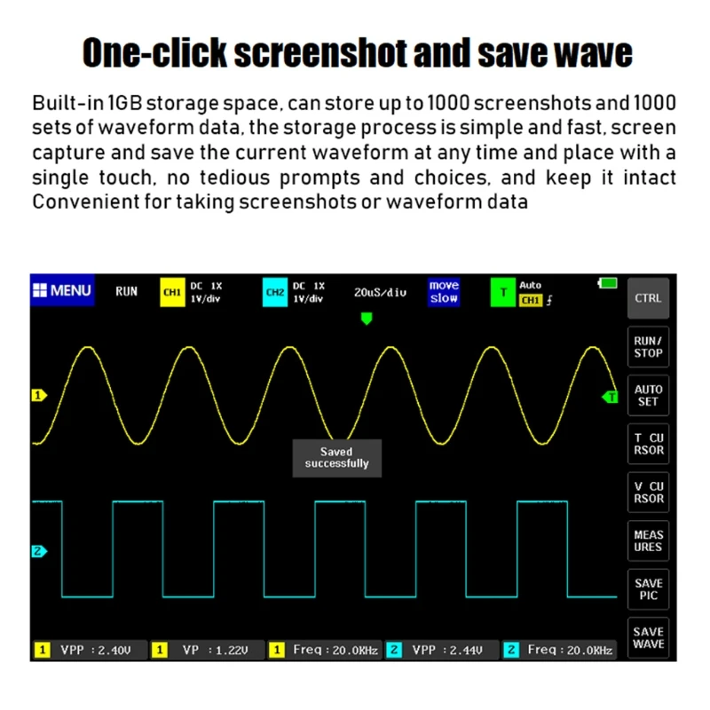 100% новый и высокое качествоFNIRSI-1013D-это полнофункциональный, практичный, экономичный двухканальный плоский осциллограф, запущенный FNIRSI для обслуживания и R & D промышленности; этот осциллограф имеет частоту дискретизации в реальном времени 1GSa / s и аналоговую пропускную способность 100 МГц * 2. С полной функцией триггера (одиночный/Нормальный/автоматический), его можно использовать свободно для периодического аналогового сигнала или непериодического цифрового сигнала; встроенный модуль защиты высокого напряжения может выдерживать Непрерывное напряжение до 400 В. ДТП осциллографа, вызванный поворотом зонда в положение 10X. Режим Прокрутки с большой базой времени может контролировать изменения медленного уровня; Оснащен высокоэффективным одним ключом, который может отображать измеренную форму волны без утомительных настроек; дисплей с диагональю 7 дюймов 800*480 разрешение высокой четкости ЖК-дисплей Экран и метод работы конденсатор с алюминиевой крышкой, Экран сенсорный экран + жест операции, очень удобно; Функция измерения курсора, вам не нужно читать блок фоновой шкалы и количество при ручном считывании амплитудных и частотных параметров, и вы можете напрямую получить пиковую, пиковую и частоту без преобразования; чрезвычайно удобный скриншот и функция хранения сигналов, встроенный объем памяти 1 Гб, Может хранить до 1000 скриншотов + 1000 наборов данных волноводной формы, процесс хранения прост и быстр, сохраняет форму тока в любое время-, в любом месте с одним касанием, без громоздких подсказок и выбора, сохраняйте спокойствие, сохраняя текущие данные в месте, которое очень удобно; Мощный Графический менеджер поддерживает просмотр, просмотр, Детальный просмотр, поворот страницы, удаление и масштабирование формы волны, масштабирование, перемещение и т. Д., чтобы облегчить вторичный анализ. Фюзеляж оснащен интерфейсом USB, который может быть подключен к компьютеру, чтобы поделиться своими скриншотами с компьютером, что удобно для вторичного анализа; функция графического дисплея Lissajous может использоваться для определения амплитуды, частоты и фазового контраста двух групп сигналов; Анализ гармонических компонентов сигнала; Встроенный литий-ионный аккумулятор высокого качества 6000 мАч, который может работать в течение 4 часов при полной зарядке и может использоваться во время зарядки, как ноутбук