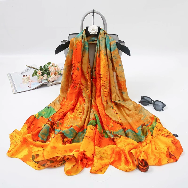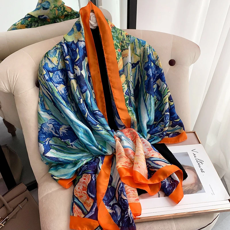 Шарф из шелка с масляной росписью Ван Гога, женский, роскошный, абр...