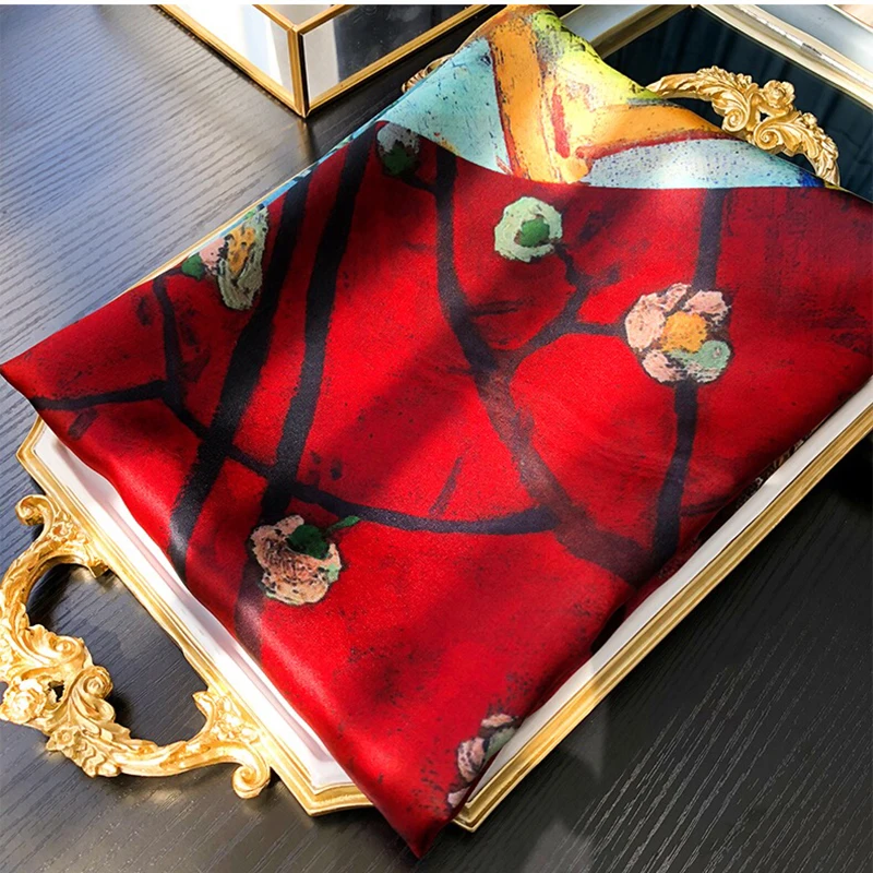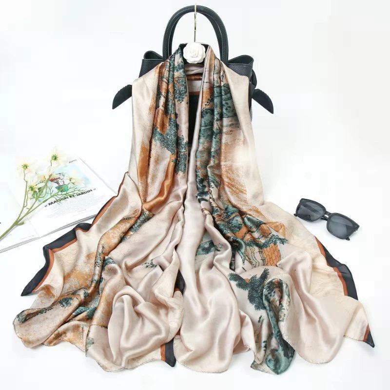 Шарф женский Шелковый, шелковые шарфы с принтом с абстрактным дерев...